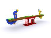 El balancí doble " les foques " el seu material de pi treballat en autoclau i figures de polietilè. Els cargols d'acer galvanitzat està protegida amb taps de Nylon.