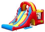 El castell inflable Megatobogán amb una rampa de tobogan doble per fer carreres per veure qui baixa més ràpid. També té una zona de salt a la part posterior, un túnel per passar sota el tobogan i una rampa d'escalada per pujar fins al tobogan.