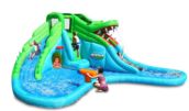 El castell inflable Cocodril és perfecte per a l'estiu. Els nens pugen per una paret d'escalada i baixen per dos tobogans (per la boca i per la cua). Hi ha un canó d'aigua per mullar als nens que baixen pel tobogan (per assegurar que baixen bé mullats), a més té una cistella i un túnel.