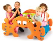 br/> En aquesta bonica taula els seus fills podràn menjar, pintar, dibuixar, etc. però... amb tan sols donar-li la volta...es converteix en un divertit balancí doble!, en el que poden jugar 4 nens a la vegada.