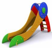 Tobogan de parc per a nens. El tobogan campaneta té un disseny modern i està pintat de colors cridaners, per fer-lo més atractiu i alegre per als nens. El tobogan "Campaneta" té la plataforma a un metre d'alçada.