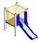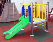 Torre d’acer de 1 m x 1 m amb plataforma a 59 cm d’altura, el tobogan és d’acer inoxidable de 45 cm d’ample amb laterals de polipropilè.