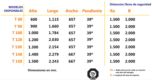 T100: 100 cm (alt) x 157 cm (llarg) x 66,7 cm (ample)
