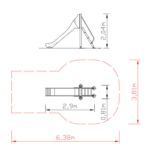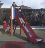 Un fort tobogan de fusta amb una rampa d’acer inoxidable de 45 cm d’ample.