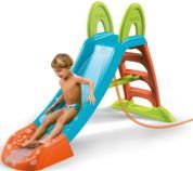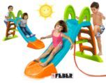 Tobogan feber slide plus, un tobogan per al jardí d'una casa particular de colors vius i adequat per jugar tot l'any. Alts passamans per a més seguretat i esglaons antilliscants.